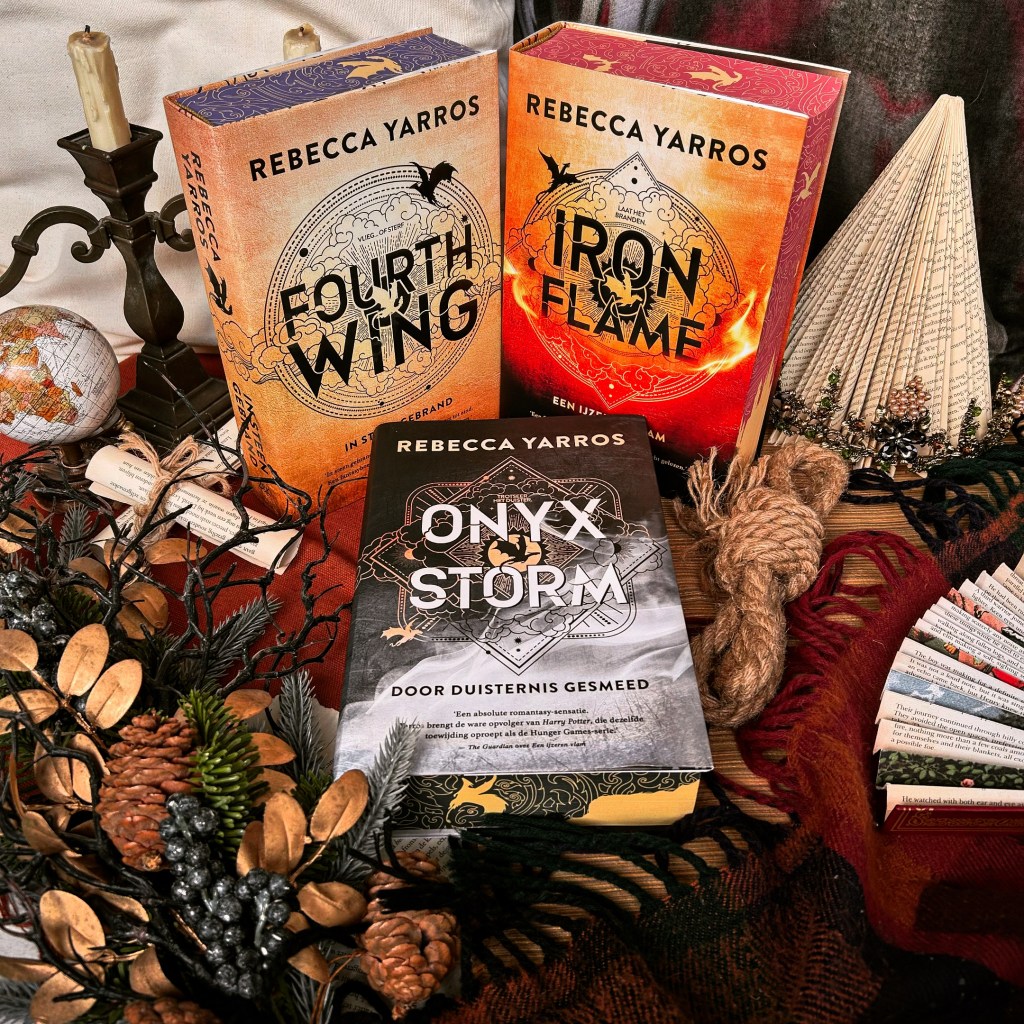 Tja… waar zal ik eens beginnen…? Misschien bij die uitermate verontrustende en heftige cliffhanger in Iron Flame?!? Man, wat heb ik, samen met duizenden andere lezers, gewacht op dit vervolg. Alleen maar om te weten hoe dat nou precies verder gaat. Wil je mijn mening lezen over het derde deel uit The Empyrean serie van Rebecca Yarros? Mijn recensie bevat geen spoilers over Onyx Storm, maar bevat uiteraard wel spoilers over gebeurtenissen uit boek 1 en 2. Hier kun je lezen wat ik van Fourth Wing en van Iron Flame vond.